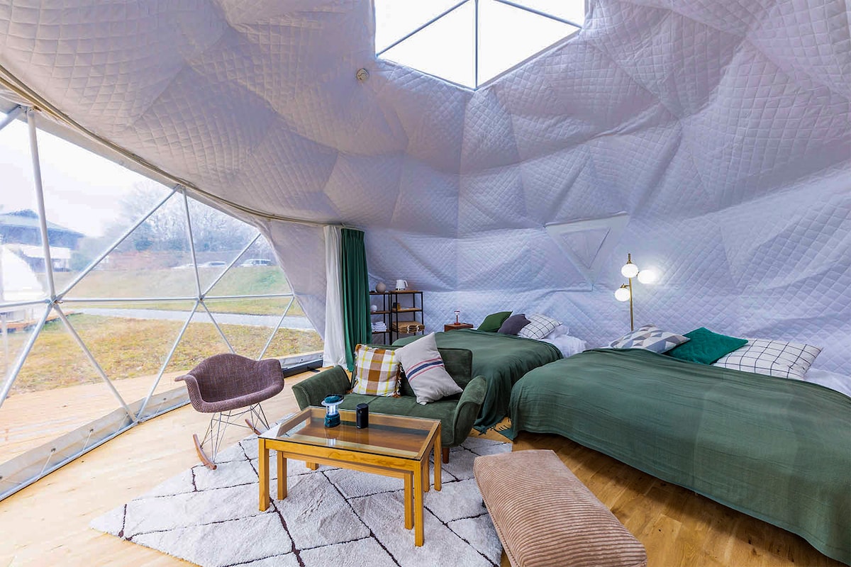 豪华露营/绿色圆顶帐篷/天然温泉/4人