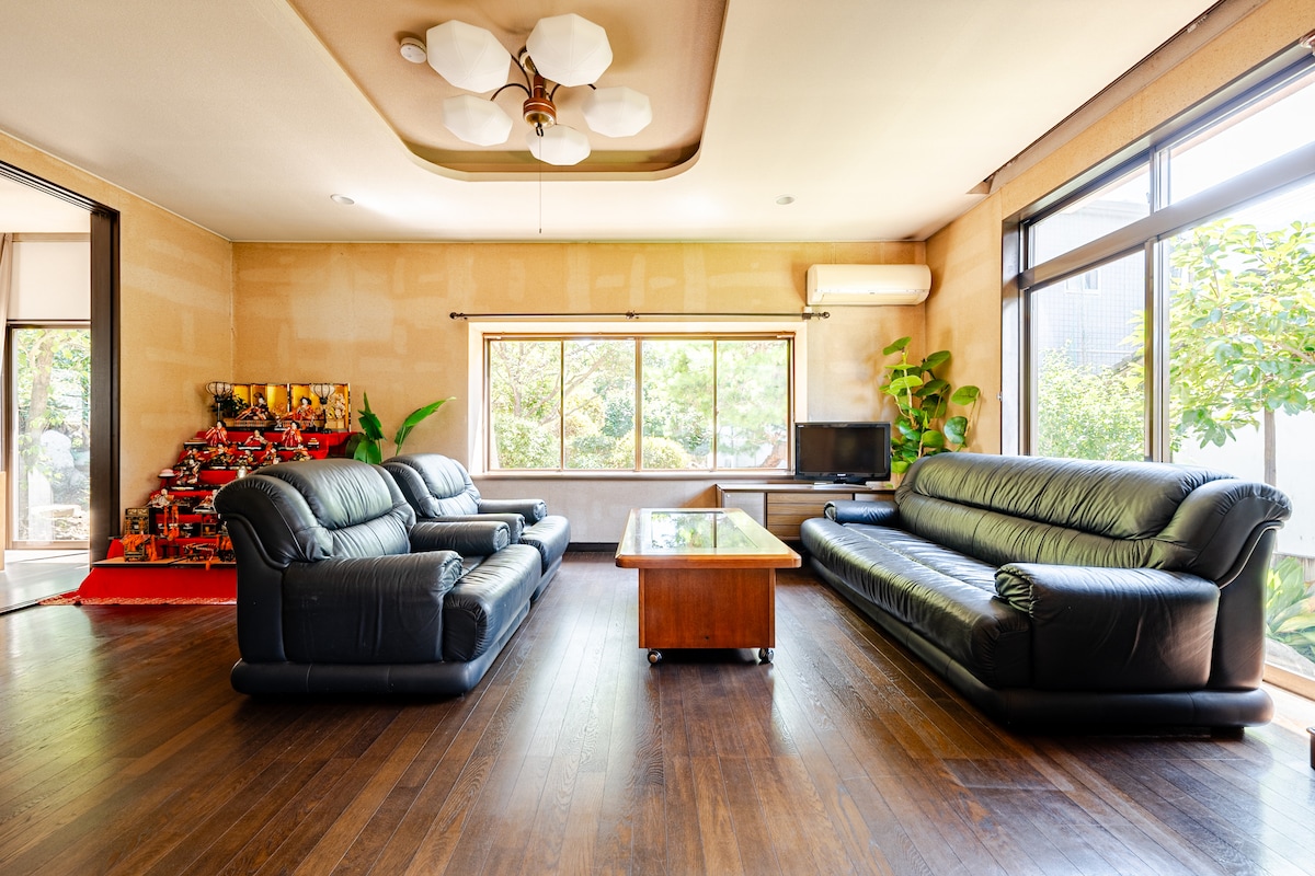Nowadays, there are more and more fake Japans created for tourists in Japan, but in this traditional house you can experience authentic Japanese life. In this spacious 5LDK house, you can relax on the tatami mats and sleep on futons. You can enjoy the same scenery and go shopping at the same supermarket as the locals, just like a authentic Japanese life. The house is also decorated with traditional Japanese seasonal decorations. You can also enjoy barbecues and sunbathing in the garden.