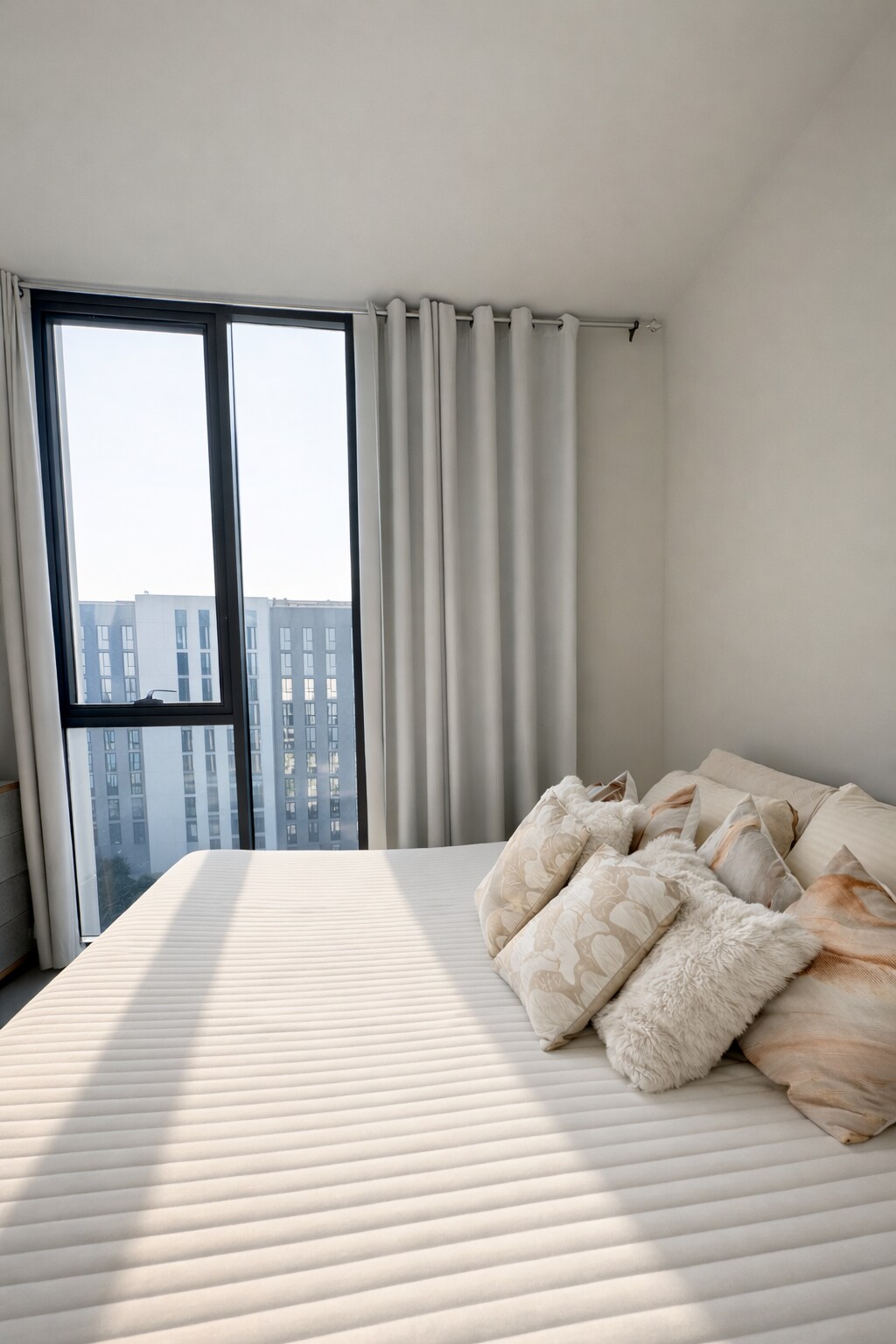 No Smoking 🚭 Enjoy minimalist comfort surrounded by lush walkways, vibrant dining, and top city specialty coffee shops at Al Jada Avenue. • Property Type: 1-bedroom apartment. • Location: Boulevard 1 – AlJada Avenue. • Amenities: Queen bed, smart TV, WiFi, fully equipped kitchen, modern bathroom, floor-to-ceiling windows, gym, pool, and a secure entry