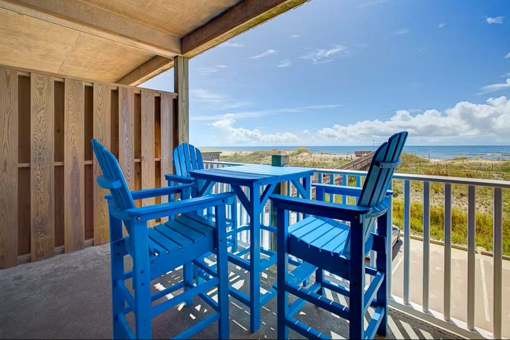 Welcome to Emily, our charming condotel suite near Cape Hatteras lighthouse! Enjoy a beach getaway just steps away from the sand, with shops and restaurants within walking distance. Relax in our common area featuring a lounge room with a foosball, TV, and comfy couches. Take in the breathtaking ocean view from our deck, equipped with lounge chairs and tables. Book now for the ultimate coastal experience! The lobby and deck area are shared by you another guests.