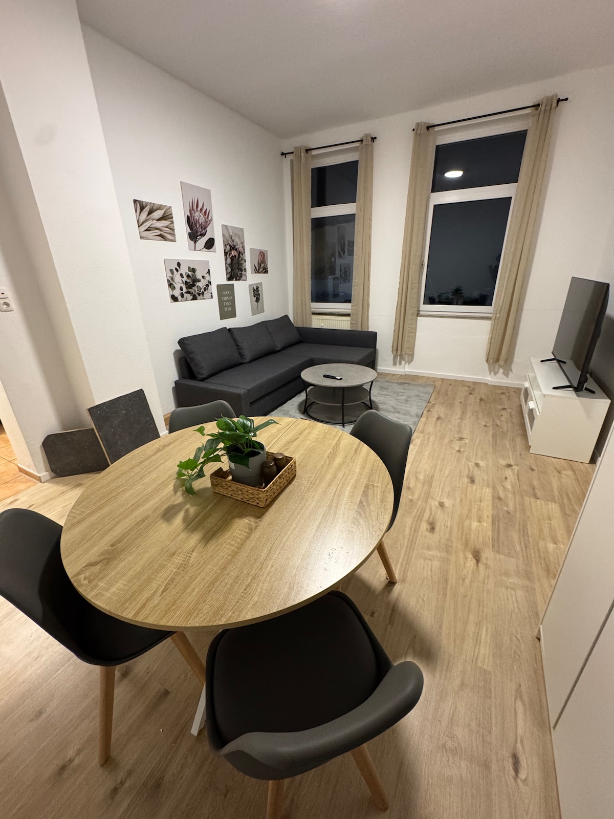 Voll ausgestattetes, 2025 frisch saniertes Appartement im Untergeschoss unseres selbstgenutzten Hauses. Der separate, stufenlose Eingang mit Rampe sorgt für einen bequemen und unabhängigen Zugang. Ausstattung Eigenes Bad Praktische Kochnische mit 2-Platten-Induktionskochfeld, Kühlschrank mit Eisfach, Spüle & Küchenutensilien Großer 50" Smart-TV mit Netflix & Amazon Prime Doppelbett (140 cm) Esstisch mit zwei Stühlen.
