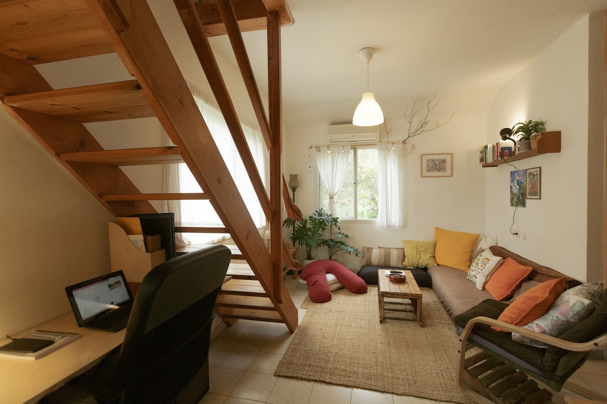 Let's keep it all and simple:) Our adorably unique cabin is located in Amirim, a quiet vegetarian village watching the Galilee from one of it's slopes. It's hidden in the woods and is perfect for the quiet and isolation seekers out there. Girls & guys, All of us should have a chance to slow down, reconnect with our inner voice, tune our vibrations and most importantly, breath. That's what the cabin is here for. It's highly recommended for yogis, artist, writers, thinkers and peace seekers.