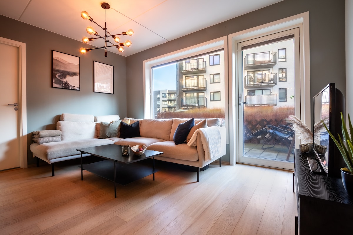 New, stylish 1-bedroom apartment with a sunny south-facing balcony and large windows. Located in a quiet area between Ensjø and Helsfyr—two of Oslo’s top transport hubs. Easy access to the city and great public transport connections. The apartment is perfect for a couple, business trip or solo travellers.