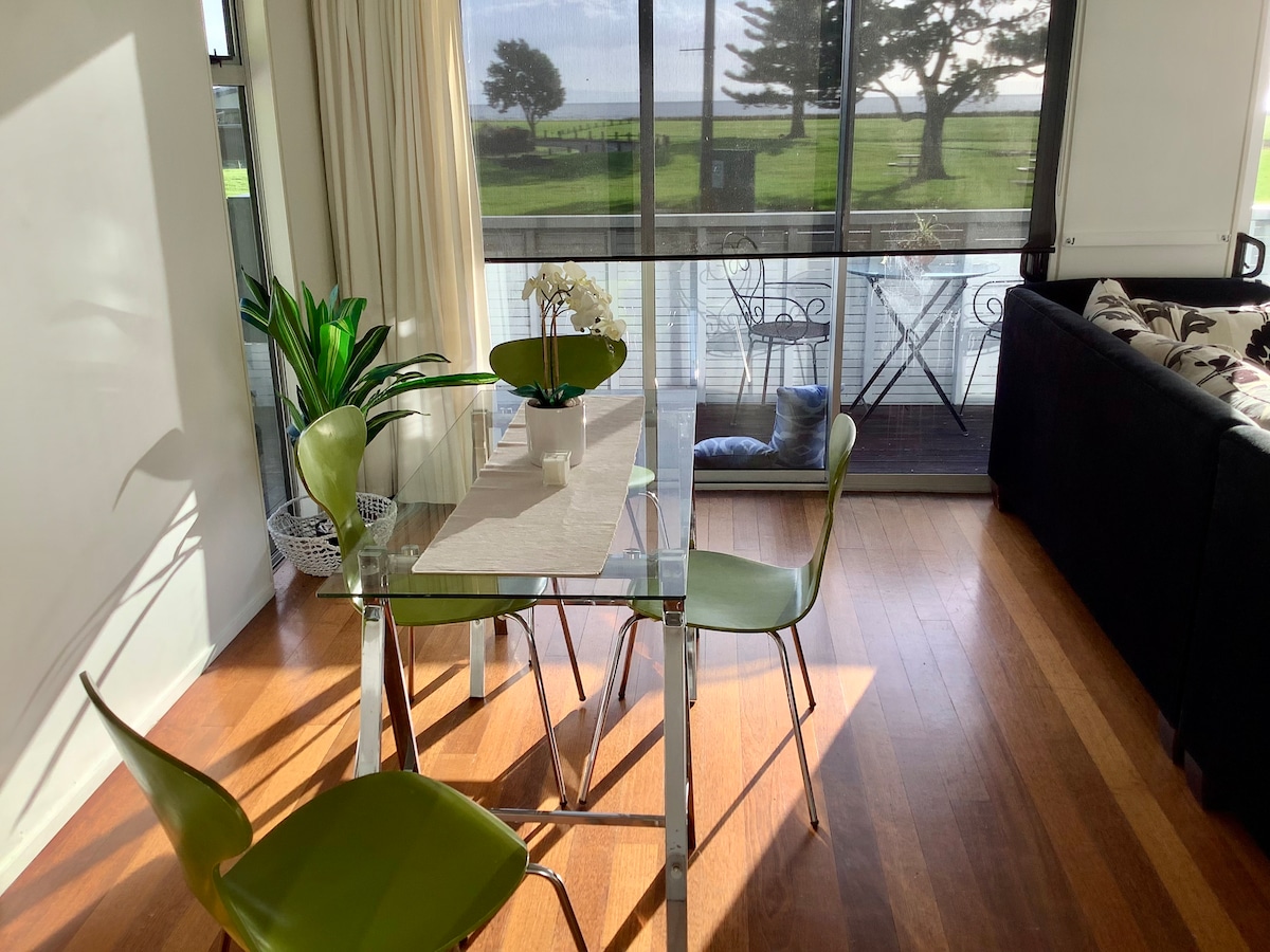 Relax on the white sandy famous beachfront of Whangamata. The perfect location, only a short 1-2 min walk from the main town centre. The apartment is private, with beautiful views of the ocean, overlooking one of NZ's best surf breaks "The Bar" The apartment is perfect for a small family or 2 couples. With 2 double bedrooms and 2 single bedrooms. A large grass lawn and sand dunes offer the perfect place to enjoy playing games with family and friends. Amenities include free Wifi, 2 TVs, AC/Heat.