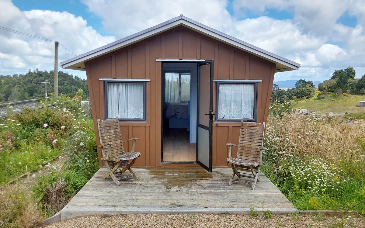 Tiny house complete with small kitchenette and bathroom as well as an outside shower and bath. The cabin can be configured with a superking bed or 2 single beds. Peaceful rural setting just 4 km from the iconic Whangamata beach. Sealed road for cyclists and just 2km from beautiful bush walks and waterfall. We are a small farm with cattle, sheep and chickens. There is an organic garden and orchard. Self catered but continental breakfast can be supplied on request at $12.50 per person (cash).