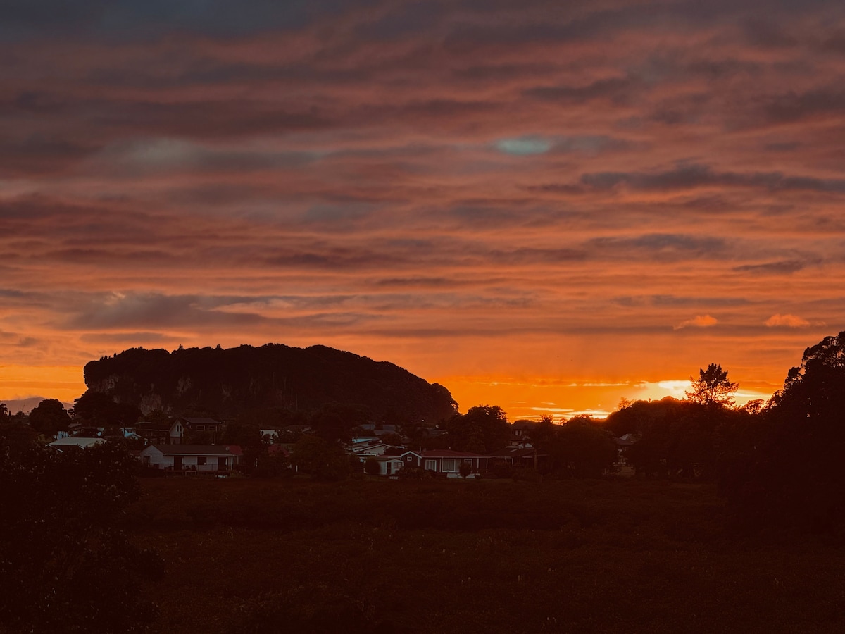 We are located 10 minutes out of Thames Township. We are the Gateway to the Coromandel .Thames township has lots of cafes and pubs with local entertainment nightly.. When staying with us you are likely to be visited by fat woodpidgeons and tuis and even the coloful laurakeets from Australia come to eat the berries on our trees. Meander thru our property to the most popular of Thames beaches at the bottom of our garden.Ngarimu Bay.