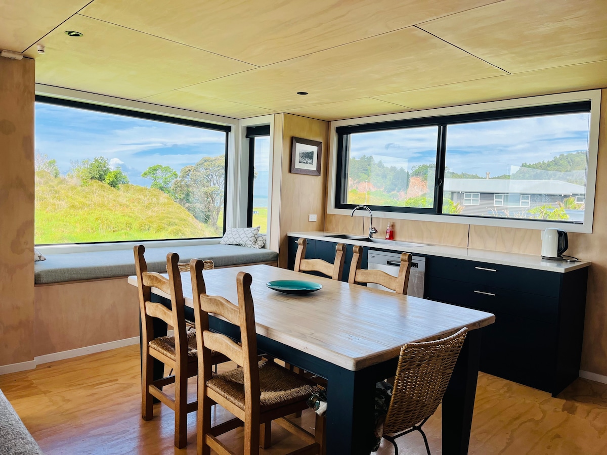The Bus Depot is a rustic retreat overlooking the beautiful firth of Thames. A beautifully restored 1979 Bedford bus which has all the modern comforts but still retains original features of the bus, this area has sleeping for two along with kitchen area, fridge, gas stove and a dining area on the covered deck. From the daybed to the loft space or going for a walk on the farm or just sitting in front of the fire you can enjoy the views at this outstanding location.
