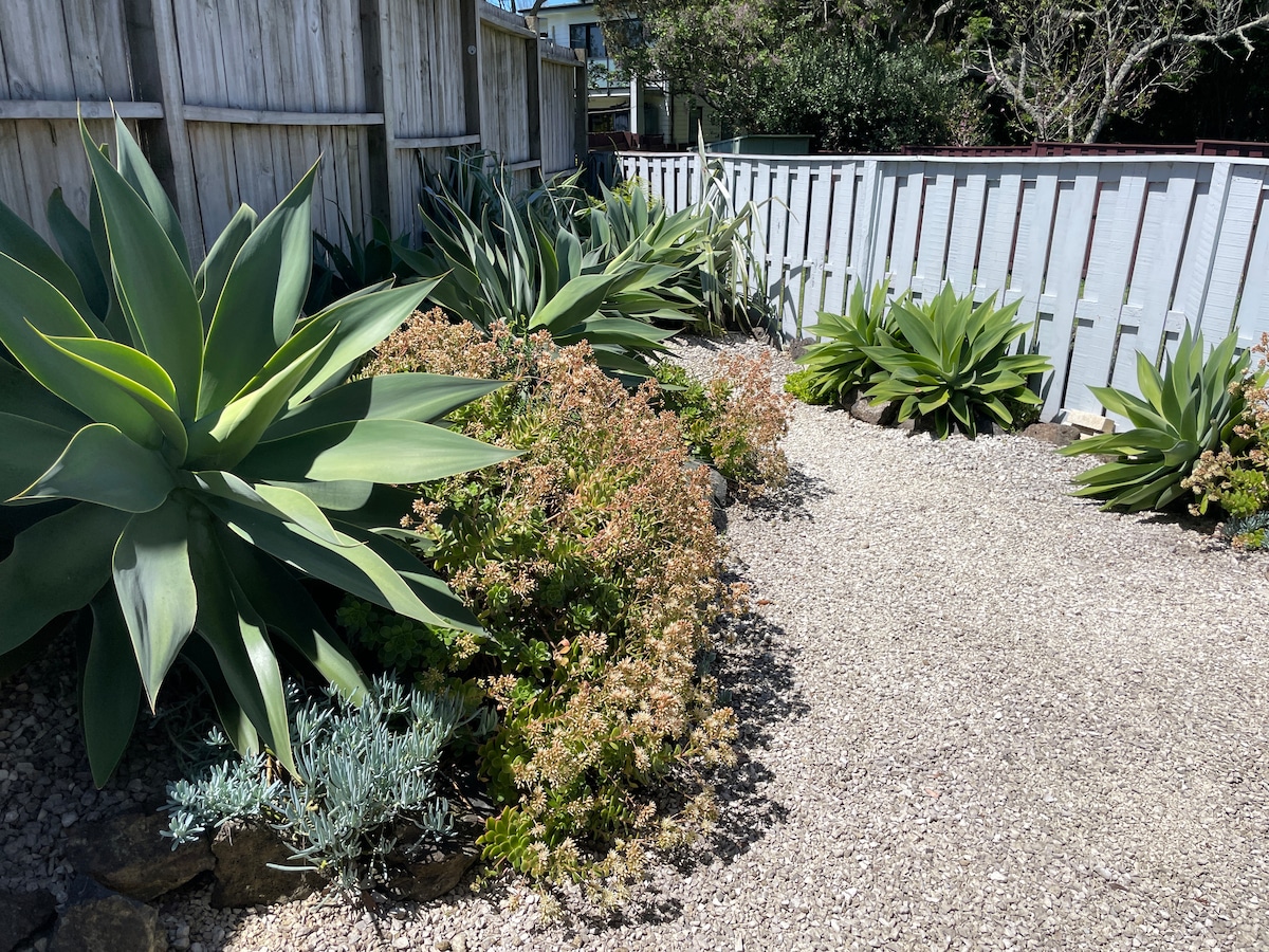 Charming peaceful sunny own small one bedroom house with sunny fenced courtyard, Queen & 1 double pullout bed, super central location to airport and CBD ground level self contained unit apartment all for yourself , your own private landscape gardens Walk 5 min to Sylvia Park shopping centre, Nz largest and train directly to CBD. Easy access to motorway and to the airport 15-20 minutes Perfect for business travellers, relocations to the city, & tourists as handy to airport and cbd