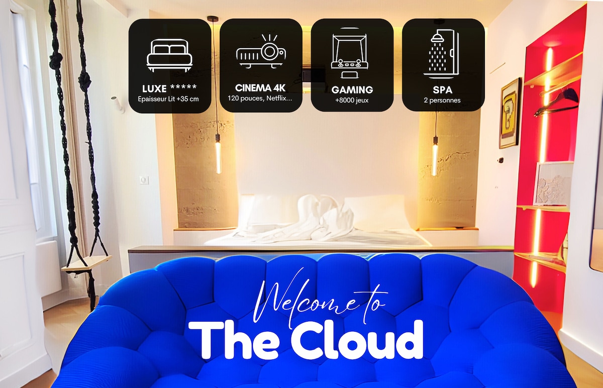 The Cloud, suite de luxe au cœur de Troyes ! Offrez-vous une nuit hors du temps dans une bulle de confort, de design et de sensations. - Lit King Size 5* pour flotter comme Sangoku sur son stratus - Douche sensorielle en Duo - Borne d’arcade avec 8000 jeux - Cinéma 4K immersif - même en journée ! - Balançoire suspendue vue sur les arbres - Canapé nuage sublimé par une aurore boréale LED Réservez votre escapade céleste et laissez-vous porter par les nuages