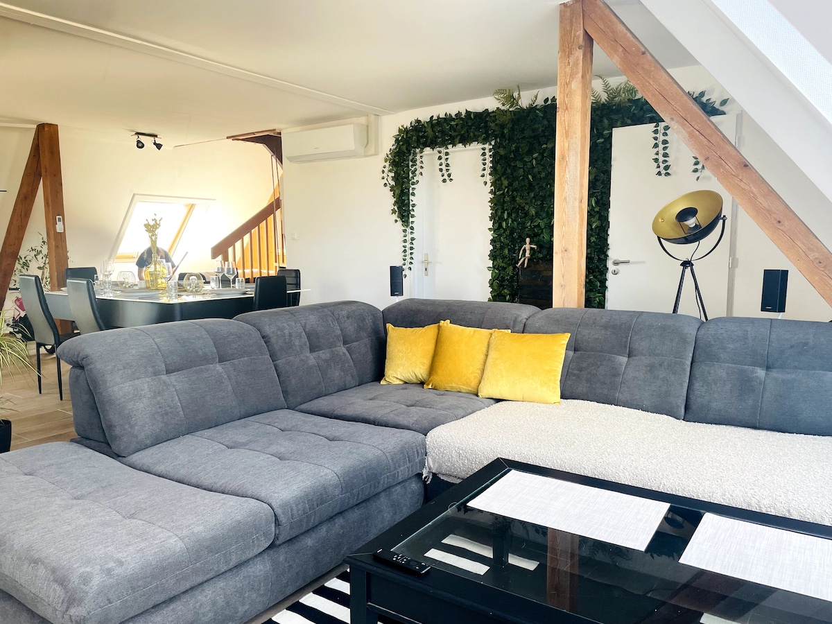 Nid des Tanneurs is a charming, atypical apartment located in the very center of historic Colmar (4th floor no elevator) With a view over the picturesque tiled roof of the Koïfhus and the Christmas markets, the apartment with exposed beams sleeps four and is composed of an open plan living area, a bathroom and a separate toilet. Each of the 2 double bedrooms is furnished with a queen-size bed. One bedroom is on the ground floor, the other is on a large mezzanine upstairs with air-conditioned.