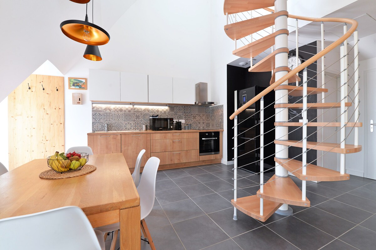 Dans une ancienne grange alsacienne en bois, cet appartement de 40 m² en rez-de-chaussée, sans escalier, est idéal pour 2 à 4 voyageurs. À proximité des commerces et avec un accès rapide à l’autoroute, il se compose de : • Une chambre avec lit double (2×90×200) • Un salon avec canapé convertible (140×190) • Une cuisine équipée • Une salle de bain avec WC • Une terrasse exposée Sud ✔ Parking privatif gratuit ✔ Draps et serviettes fournis ✔ Wifi haut débit (fibre) ✔ Netflix & Prime Video