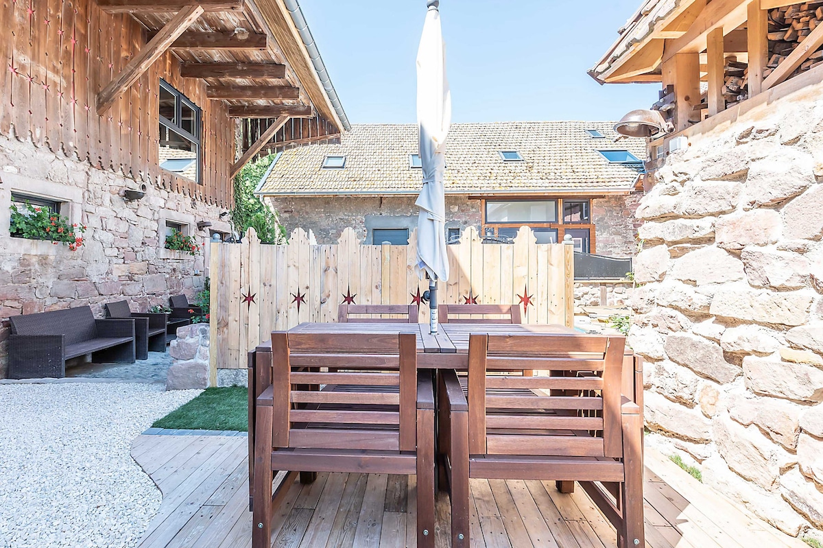 A stay in peace and quiet ... Located in Ungersheim, village in ecological transition nestled in the heart of Alsace, enjoy a barn typical of the nineteenth century completely renovated combining modernity and authenticity. With a capacity of 8 people, fully privatized, with a closed parking, you can combine tourism and relaxation thanks to its spa area and sauna.