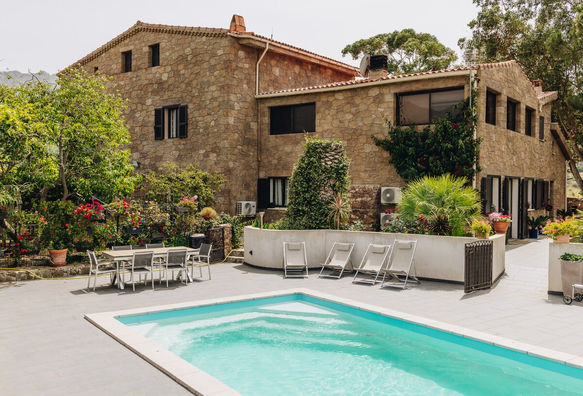 C'est une construction âgée de 500 ans, il s'agit d'un ancien pressoir à vin appelé "U FRAGNU", ce bâti est une construction typique et entièrement construite avec les pierres du village, elle se trouve au milieu d'une ancienne vigne avec son petit ruisseau qui coule à ses pieds. Vous pourrez profiter de sa terrasse privative couverte, de son jardin très ensoleillé avec vue sur nos belles montagnes ainsi que son bassin de baignade en pierres d'où coule sa cascade qui vous apaisera.