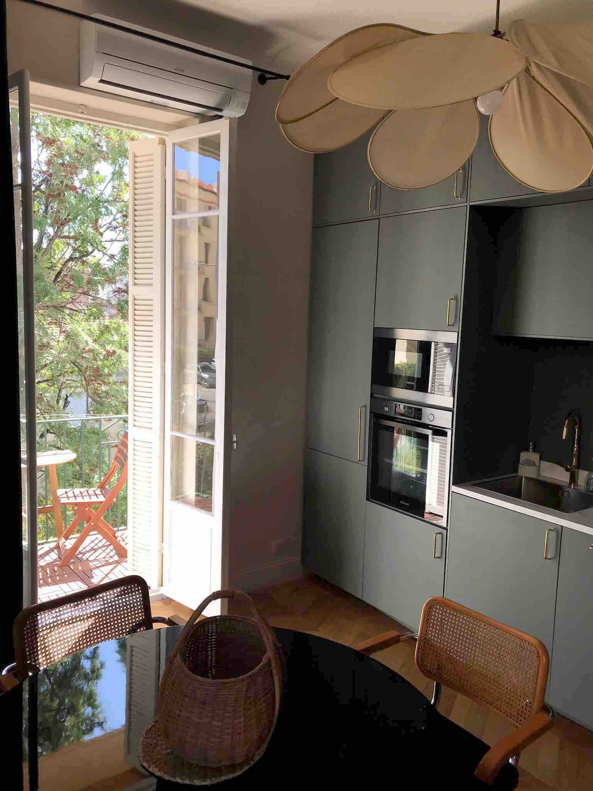 L appartement est de style chic parisien , dans un immeuble art deco situé dans une cour intérieure en plein centre d Ajaccio. Très calme et très lumineux , disposant de deux terrasses , deux grandes chambres et un canapé lit ( 1 personne)dans le salon . Une salle de bain avec douche , salon , cuisine équipée.Idéalement situé à proximité de la célèbre place du Diamant, à 300 mètres de la plage st François et la grotte Napoléon , la vieille ville, le vieux port , le marché sont à deux pas .