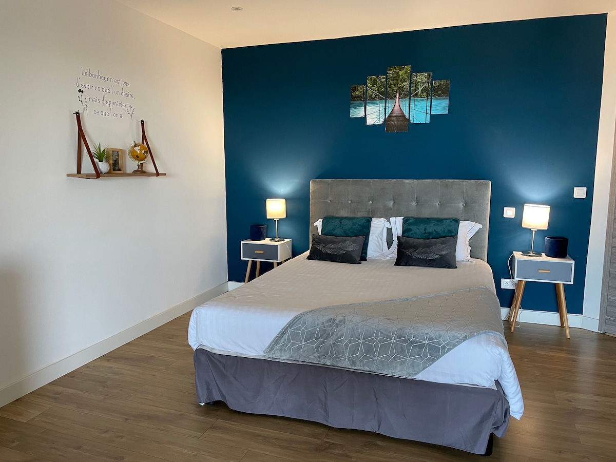 Appartement récent et spacieux sur un terrain de 2 hectares, vous disposerez: D'une cuisine entièrement aménagée ouverte sur une jolie pièce à vivre Une chambre et dressing attenant Une salle de bain avec baignoire d'angle, douche à l'italienne et WC. Une grande terrasse vue montagnes et couché de soleil L'appartement est climatisé et équipé d'une TV, de la connexion WIFI.