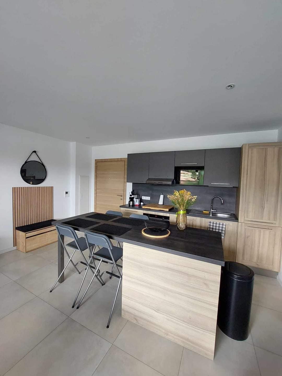 T2 NEUF de 45 m² à Corte, la capitale historique de la Corse Il se compose de la manière suivante : - un salon de 22 m² (avec canapé convertible...) - une cuisine ouverte toute équipée avec lave vaisselle, lave linge, frigo combiné, four, robots, cafetières... - une chambre avec un grand lit en 160 et un grand dressing - une terrasse de 17.5 m², agréable et ombragée avec une belle vue sur la citadelle et le reste de la ville. Une belle sélection des meilleurs vins et huiles essentielles...