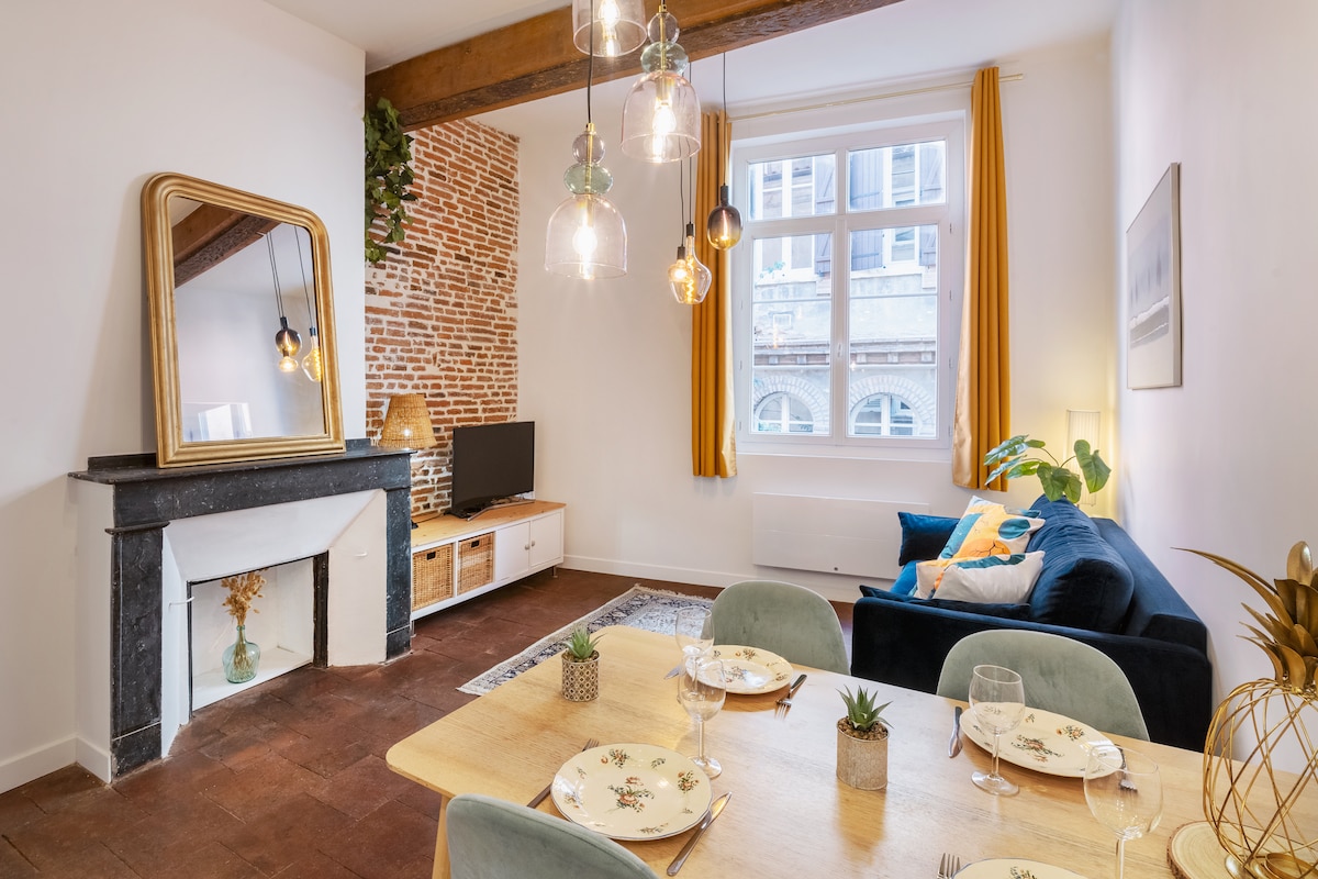 Discover this sun-drenched studio located in the heart of Toulouse, just a 15-minute walk from the Place du Capitole and a stone's throw from the Palais de Justice metro station. Bathed in natural light, this renovated apartment, set within a magnificent, traditional Toulouse pink-brick building, is sure to charm you. Its warm atmosphere is enhanced by designer pieces, guaranteeing you a truly unique stay.