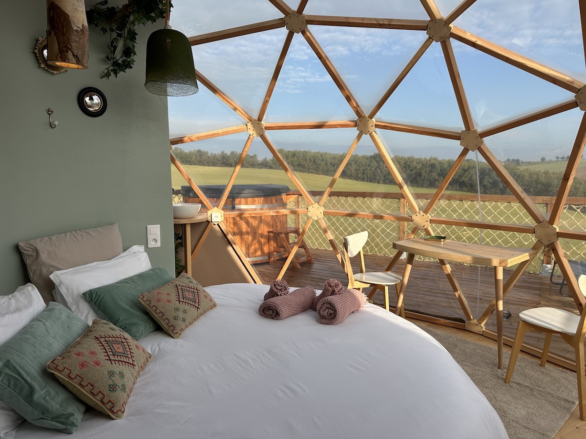 **BELLOREADE** Glamping "Mégapod" in a guesthouse, green setting, in Ariège Pyrenees. A charming romantic cocoon. - Large bed 160cm - Air condition - 2 terraces with sunbeds table and chairs - Breakfast included - Free access to the jacuzzi (per 30min session / use) - Outdoor swimming pool in season - Massage on site Nearby: medieval town of Mirepoix, Lake Montbel, Cathar castles Montségur and Roquefixade. Dog 5€ up to 3 nights / 10€ +3nights