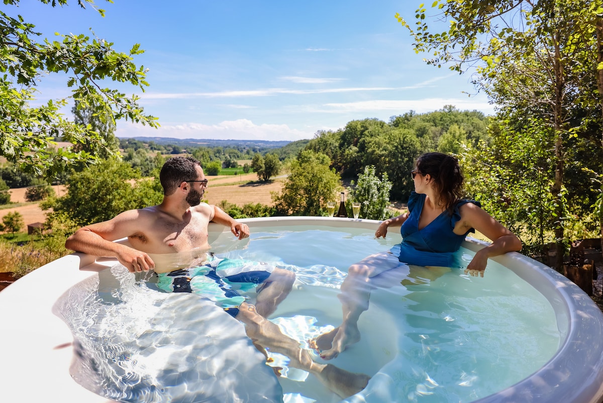 Le gîte, "Le Joyeux Liseron", est une maisonnette cosy avec terrasse sur pilotis plus un espace nature avec belle vue sur les coteaux et bain nordique privatif. Independent, il est au fond de la propriété, tournée vers la nature. Boulodrome en accès libre. Un gîte idéal pour séjour détente/nature. Bain nordique au feu de bois, facile à utiliser (attention, pas jacuzzi, pas de bulles mais écolo !). Génial par tous temps ! Pour rayonner dans beaux paysages du Tarn, visiter Albi, Gaillac...