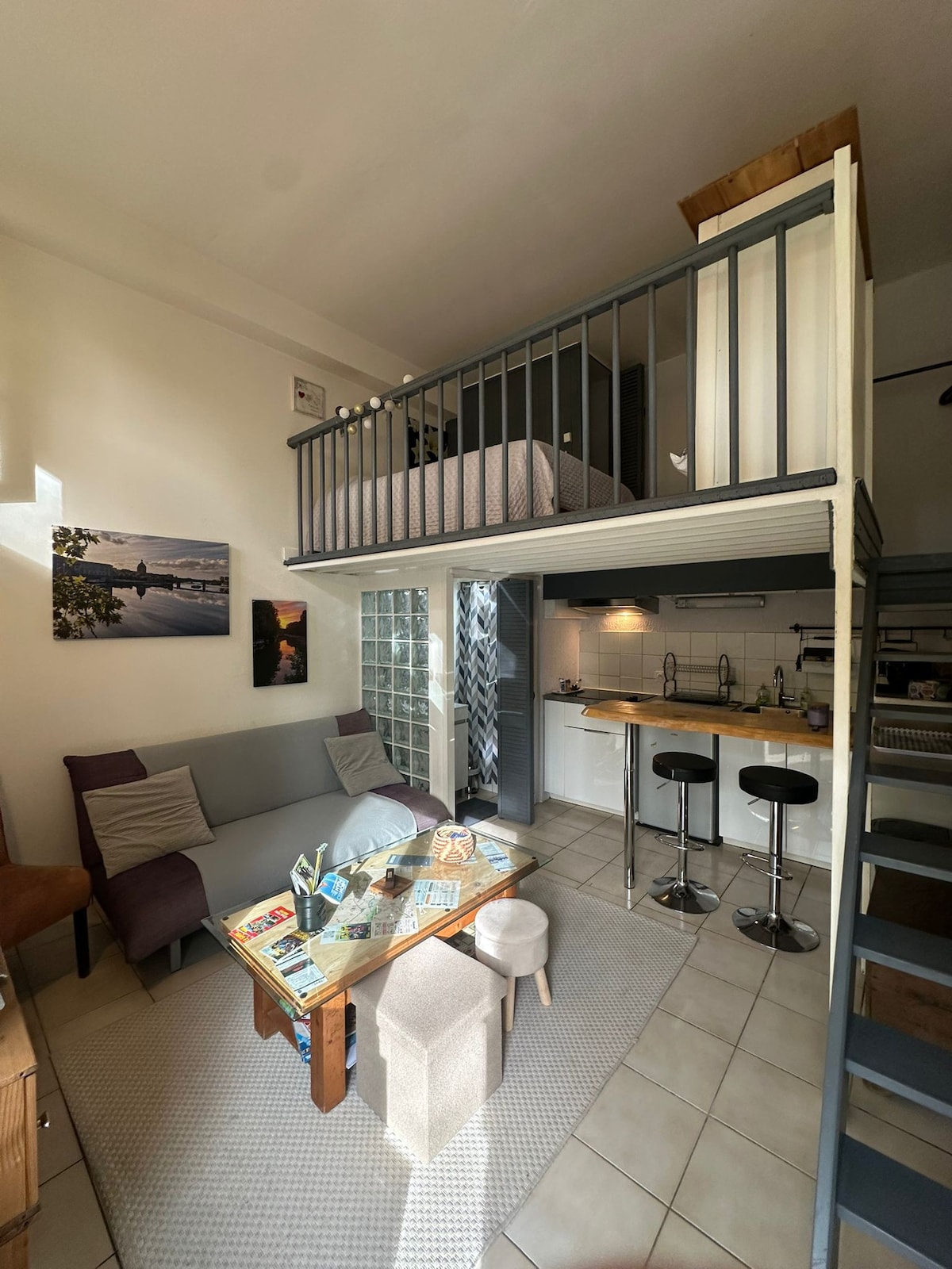 studio de 20 m2 élégant à 5 mn de marche de la gare Matabiau et 15 mn de marche de la place du Capitole.Refait à neuf il est dans une petite residence au bord du canal du Midii ( inscrit au patrimoine mondial de o UNESCO) .... Petit cocon se composant d une pièce de vie de 15 m2 avec une sallle de bain et toilettes séparés.Profitez d'un logement élégant et central.