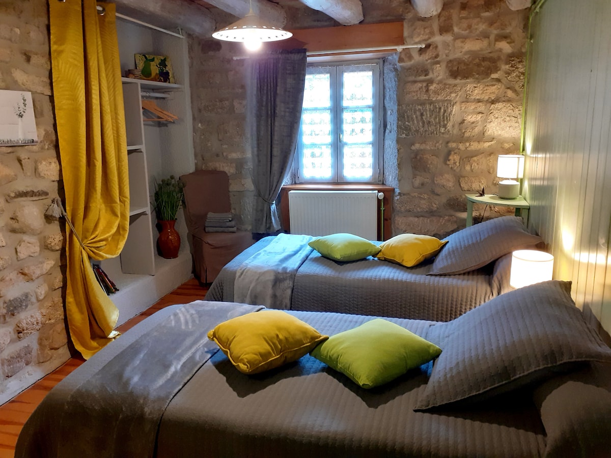 Our lovely nest in the heart of the Auvergne is for a couple or a family (max 5 pers + baby), or 2-4 ad. Private kitchen and bathroom. We renovated the rooms with second hand and organic materials, old furnitures and items coming from the former farm. There is a peaceful and vintage atmosphere here, and the nature surrounds you... If you're looking for somewhere to stay one night or THE place to rest a few days, you found the right place ! Check on the net "Le Vallon d'Armandine"
