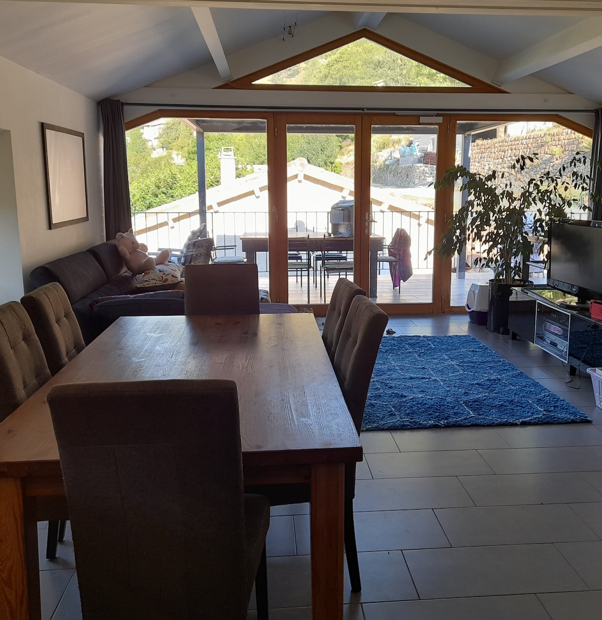Notre maison est à quelques mètres de la ruine du Château, dite la Potence. Au milieu des sapins, un grand parc vous attend. La vue est exceptionnelle sur la vallée ! Nous vous proposons un gîte à thème BALI pour vous évader en Indonésie. Pour 6 personnes, au RDC, il est tout équipé, avec un espace extérieur couvert. Une 7e personne peut partager le canapé lit (avec supplément de 15€ à régler sur place). Notre domaine vous propose 2 autres gîtes : Hakuna Matata (2 pers) et Route 66 (5 pers).