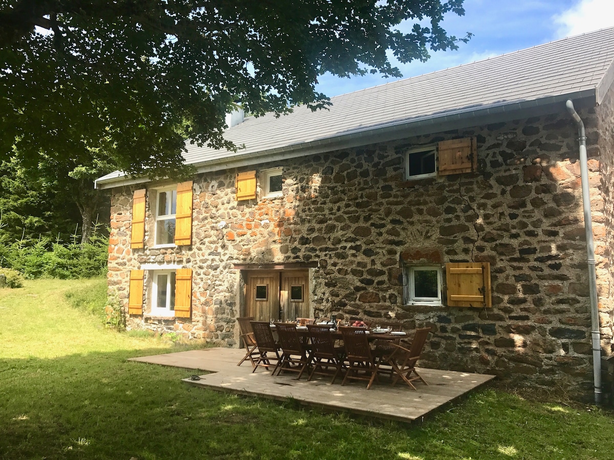 Bienvenue dans notre ferme de 1765 restaurée, à 1300 m d’altitude, en bordure de forêt et aux portes du Parc des Monts d’Ardèche. 4 chambres, 2 salles d’eau, un salon avec cheminée à bois, home cinéma avec Netflix, jeux de société et livres. Terrasse, barbecue, vue nature. Animaux bienvenus. Lac naturel à 5 min, randonnées, VTT, raquettes dès la porte. Ski aux Estables, charme du village de Saint-Front à proximité.