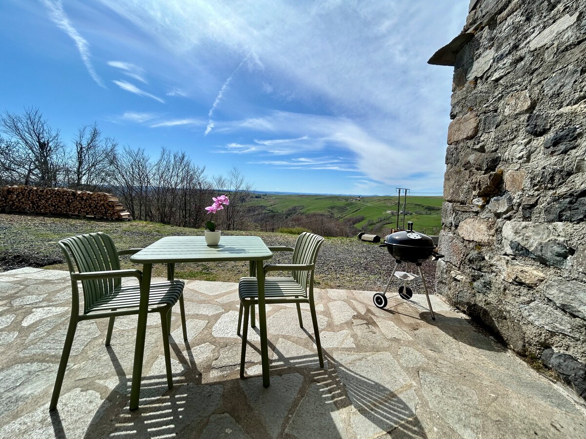 Offrez-vous une escapade romantique dans une ferme du 18ᵉ siècle rénovée. Studio chaleureux avec vue panoramique sur les montagnes, jacuzzi & sauna privatifs, sans vis-à-vis. 🌹 Champagne, fleurs & pétales disponibles pour sublimer vos soirées. Espace extérieur cosy avec barbecue, à 5 min des restaurants & rivière. 📍35 min St-Étienne, 10 min Yssingeaux, 30 min Le Puy, 10 min passerelles himalayennes.