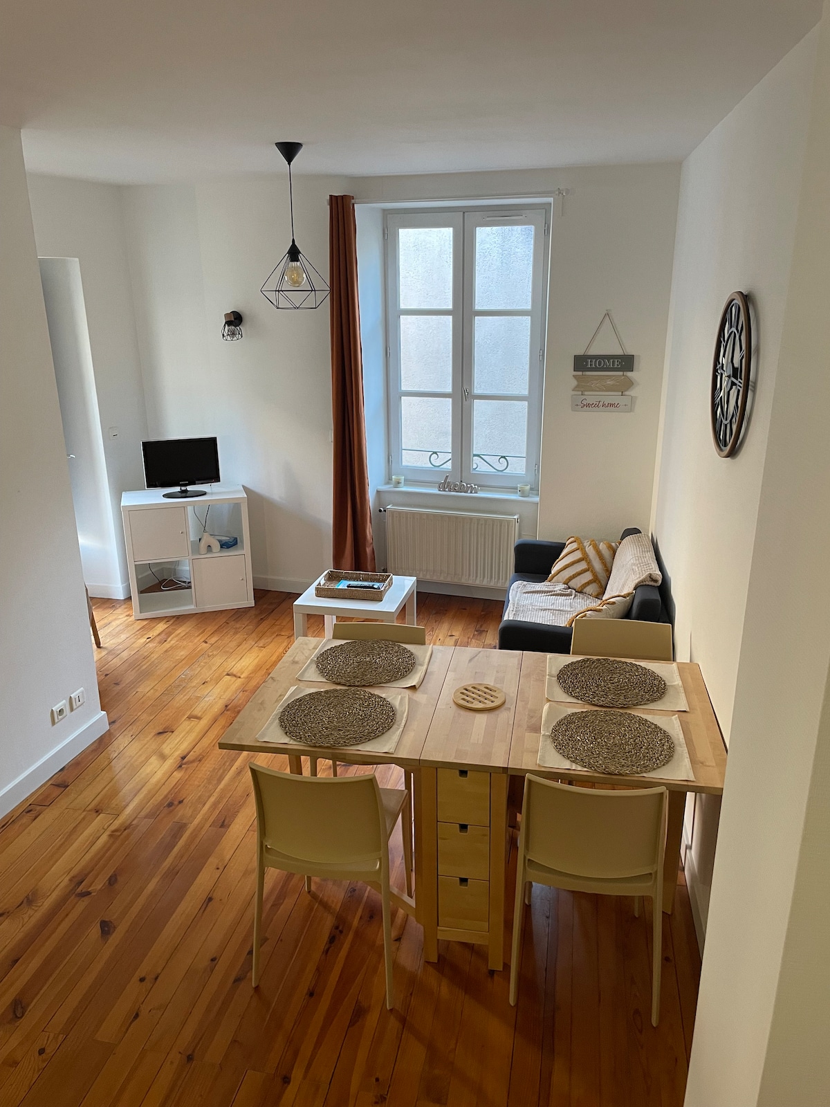 Charmante maison du XIXème, en plein cœur du centre ville, entièrement rénovée. Située dans le quartier du Pouzarot. place Cadelade, proche de la gare et aux pieds des restaurants et commerces. Maison sur 4 niveaux : sous-sol (salle détente avec babyfoot), palier (salon cuisine et terrasse), 1er étage (chambre parentale et SDB), dernier étage (chambre enfant et petite pièce bébé). Cuisine entièrement équipée (lave vaisselle, four, micro-onde, Nespresso, électroménager) Animaux non autorisés