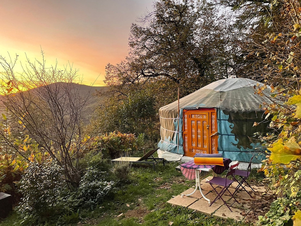 Venez vous ressourcer dans notre yourte en pleine nature avec vue imprenable sur la vallée de la Bourges... reculée, sauvage et magnifique rivière! Au coeur du Parc Naturel régional des Monts d'Ardèche, vous découvrirez notre zone de moyenne montagne pour un séjour reposant, sportif ou découverte... Possibilité de se baigner das la rivière sur place à quelques minutes de marche. Nous vous accueillons dans notre ferme où nous élevons des brebis , nous produisons la châtaigne et la myrtille.