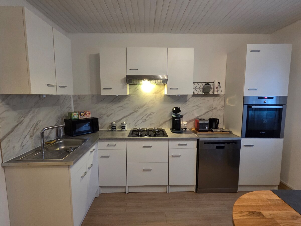 Location appartement de 60m2 au calme et au coeur du village de Giffaumont-Champaubert. L'appartement est composé : d'une chambre(lit double), d'un vaste salon-salle à manger doté d'un canapé convertible D'une cuisine entièrement équipée (plaque de cuisson, mini four, lave-vaisselle, lave micro onde, bouilloire, grille pain, senseo ... Et d'une salle de bain séparée des wc. Draps compris dans la location. Vous avez accès à un petit terrain équipé d'un salon de jardin pour profiter du soleil.
