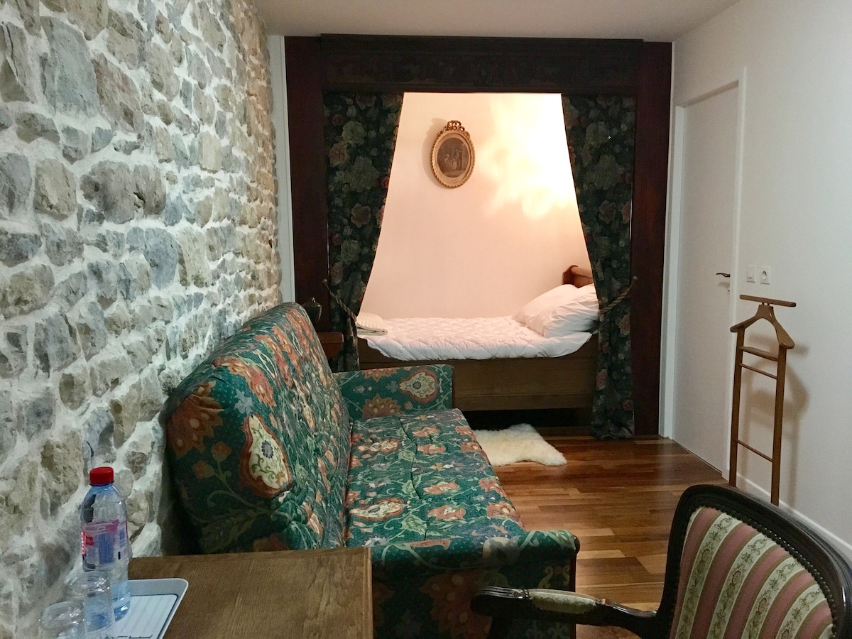 Notre maison dans laquelle nous habitons à l'année à été restaurée pour avoir tout le confort tout en gardant les caractéristiques d’origine ( boiseries , parquets , cheminées , tableaux , etc…) et la cour est devenue un jardin accueillant. Les animaux ne sont pas admis . Une aile entière de la maison vous est réservée au premier étage donnant sur le jardin intérieur .