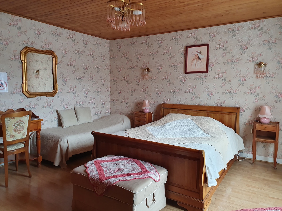 Dans une maison à la campagne, un étage privé vous est mis à disposition. Possibilité d'y réserver, pour une seule famille, une chambre double (chambre cottage), ou une chambre triple (chambre garden). Les deux chambres partagent un salon privé, ainsi qu'une salle de bain et toilette séparé. La cuisine d'été ouverte du 01 Mai au 15 Septembre ainsi que sa terrasse vous sont accessibles, tout comme notre vaste jardin. Un petit déjeuner complet vous sera servi dans votre salon privé.