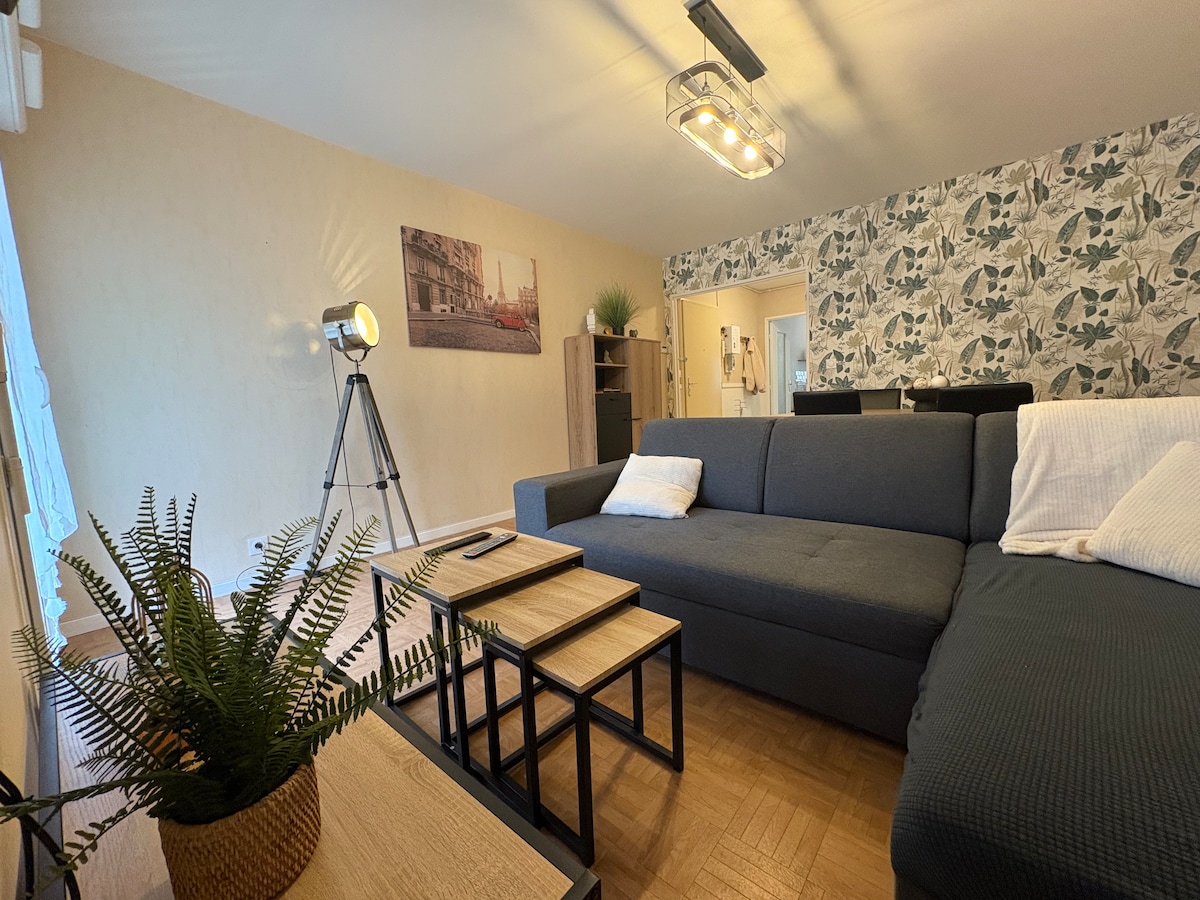Bienvenue à L’Évasion Verte 🌱 Au pied de Langres, à quelques minutes des remparts, cet appartement est parfait pour un séjour en couple. ✨ Points forts : Emplacement idéal proche des restaurants et attractions. Cuisine équipée et chambre confortable (lit 160x200cm, literie neuve). Wifi rapide, TV connectée et place de parking privée 🅿️ Animaux acceptés 🐾 📍 Explorez Langres : remparts, cathédrale Saint-Mammès, lacs de la région. 🕓 Check-in dès 16h00, arrivée autonome avec une boîte à clés.
