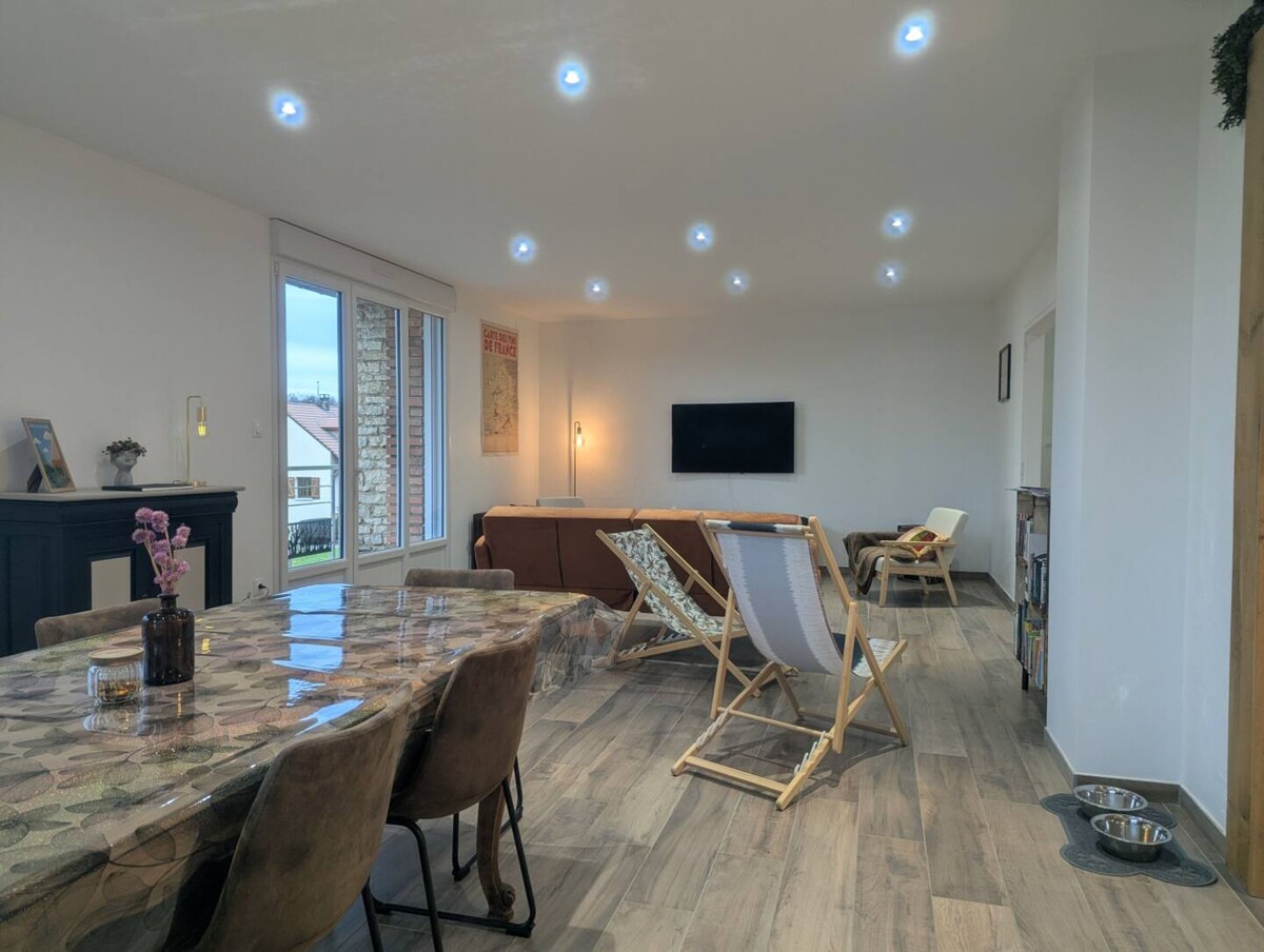 Situé aux 2 derniers étages d'une ancienne coutellerie, ce duplex de 120 m2 est dans un écrin de verdure et permet de trouver calme et sérénité. Cet appartement non fumeur possède une cuisine aménagée ouverte sur un salon/salle à manger, de 2 chambres et d’une salle de bain (douche + baignoire). Le tout est décoré de manière actuelle et design. Accès à un jardin au bord de rivière. Idéal pour touristes et salariés d’entreprises . Possibilités de louer au même niveau un logement identique.