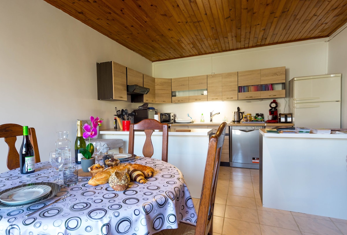 Vous avez la maison juste pour vous. Au rez-de-chaussée un grand salon avec 1 canapé convertible et 1 second canapé , TV 108 cms écran plat. Une grande cuisine tout équipée, micro-ondes, bouilloire, senséo nous vous offrons le café. 3 chambres à l'étage 1 lit King size, 1 lit 90x190 2ème ch 1 lit 140x190, 2 lits 90x190 3ème chambre 1 lit 140x190, 1lit 90x190 à 5 mins sortie A31 ,langres nord cette maison vous offrira une bulle de calme pour une nuit ou plus...terrasse au calme , vaste jardin.