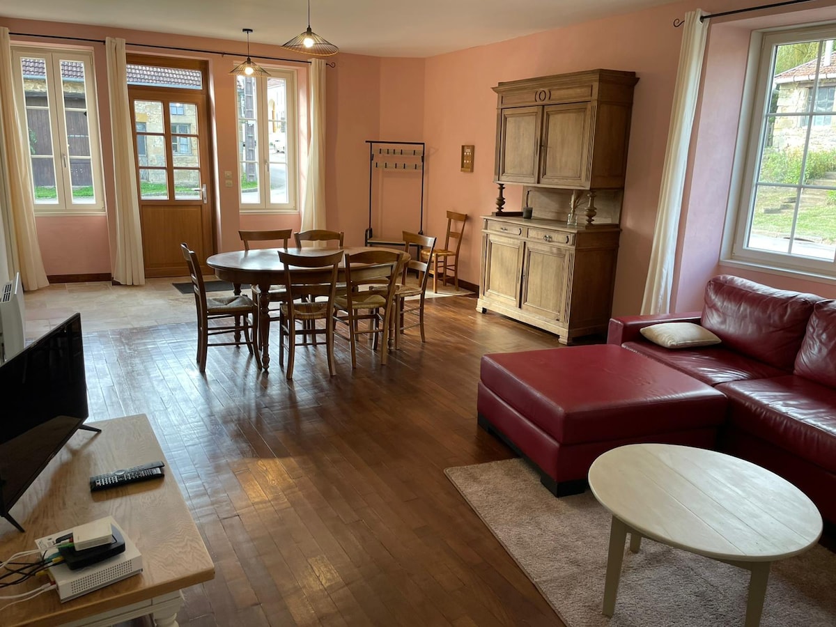 Bienvenue à L'Ombelle, élégante demeure de 150m2 situé entre Langres et Dijon. Jusqu'à 8 voyageurs, profitez d’une pièce de vie lumineuse, cuisine équipée, 3 chambres confortables, espace spa avec sauna, une grange aménagée en salle de jeux, terrasse et terrain de pétanque. Entièrement clôturée, idéale pour un séjour en famille ou entre amis. Village avec commerces et restaurant à proximité. Idéal pour une parenthèse au vert, réservez dès maintenant votre séjour !