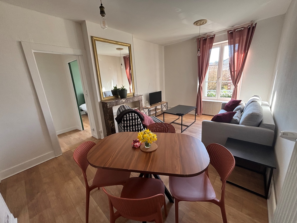 Détendez-vous dans ce logement calme et élégant. Tombez sous le charme de cet appartement cosy et spacieux en duplex à 2 minutes à pied du centre ville de vesoul Vous serez conquis par cet appartement très lumineux situé dans une petite copropriété au charme des anciennes pierres Situé au 3 étage, cet appartement a été totalement rénové Il comprend Un séjour, une cuisine, deux chambres, une salle de bain avec baignoire et wc séparé Pour une entrée autonome une boîte à clefs est à disposition