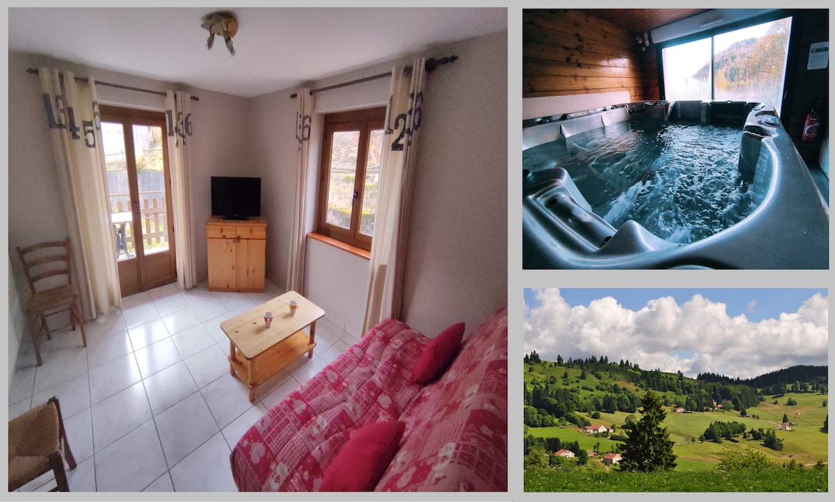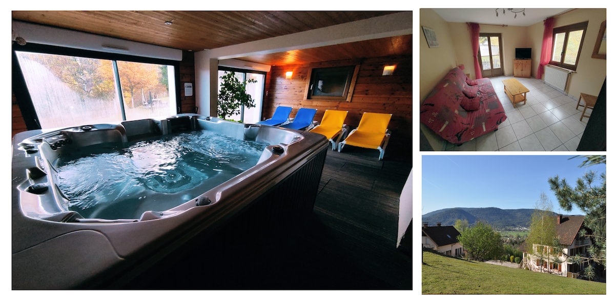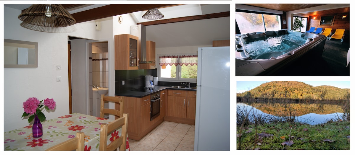 Are you looking for calm, a clear view to the mountains, a place at the crossroads or multiple hiking and mountain biking trails on the Plateau des 1000 étangs ? So look no further, book the Gite de l’atelier, an old farmhouse renovated just for you on a bucolic place un the heart of nature where you will be pampered : 2000 m2 of flat land, a terrace with a large garden and a dining area with gas barbecue and above all a spa heated all year round. A real cocoon !