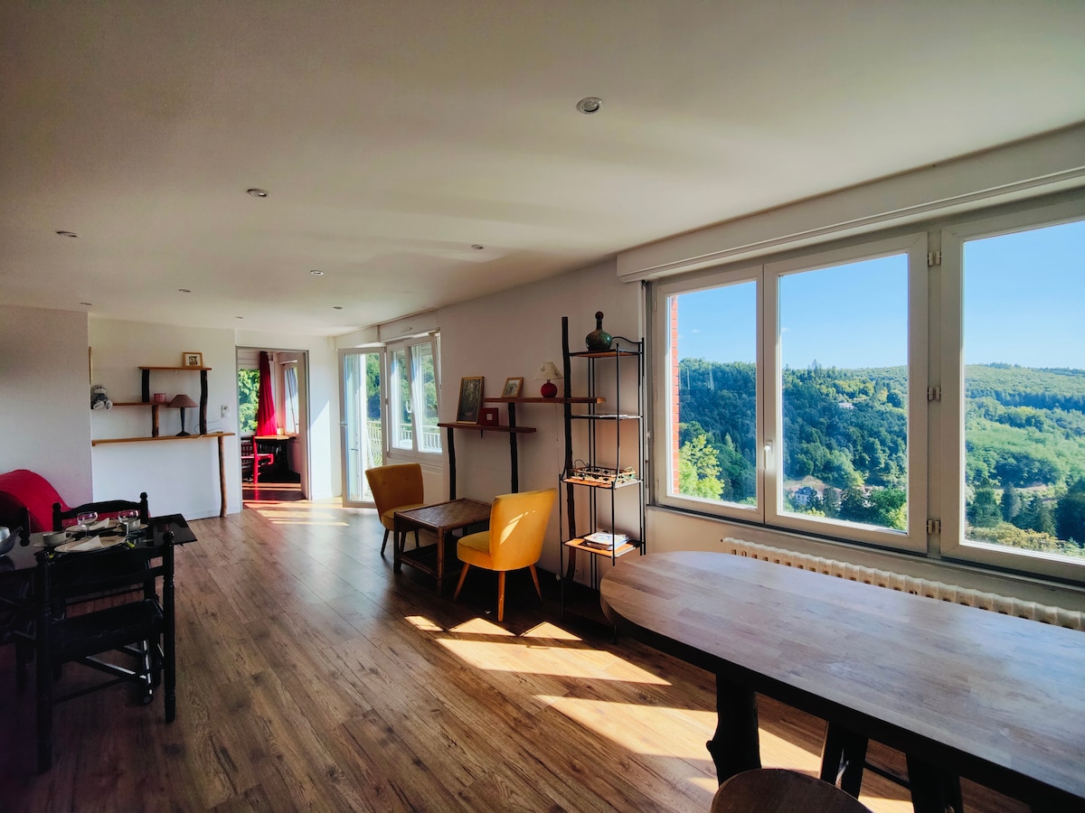 Maison contemporaine de 90 m2 au calme a 600 mètre d'altitude, située au Ménil sur 1 HA de terrain, avec une vue magnifique sur la montagne.Mon logement est proche des parcours de randonnées. Vous apprécierez la situation paisible et le calme dans un cadre magnifique. Pendant les vacances scolaire je ne loue que du Samedi au Samedi (donc Minimum 7 Jours) Du 1er Octobre au 31 Mars la consommation d’électricité est en supplément(HP:0 22,HC:0,17) Borne de recharge sur place au tarif de 0,22cts/kwh