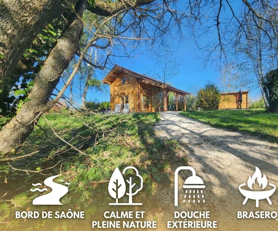 Venez passer un agréable séjour dans notre petit chalet,tout confort,où vous serez séduit par le calme et l'environnement paisible.composé d'une grande pièce principale avec coin chambre parentale et une mezzanine pour les enfants vous vous sentirez comme dans un cocon.un salon détente, cuisine d'été,bain nordique pour les moments relax (option),une grande aire de jeu ainsi qu'une cabane pour les enfants,vélo pour les balades le long de la saone,de merveilleux souvenirs en perspective...