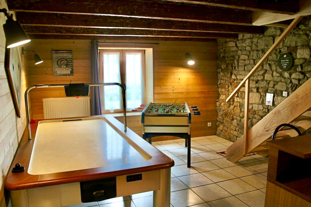 Profitez en famille ou entre amis de ce fabuleux logement dans le massif vosgien, qui offre de bons moments en perspective, grâce a sa piscine-balneo chauffée privative( juin à septembre), sa salle sport , son sauna (sur réservation en sup),salle de détente billard, baby foot... ses espaces verts, sa terrasse privative équipées tout est mis en œuvre pour un séjour réussi.