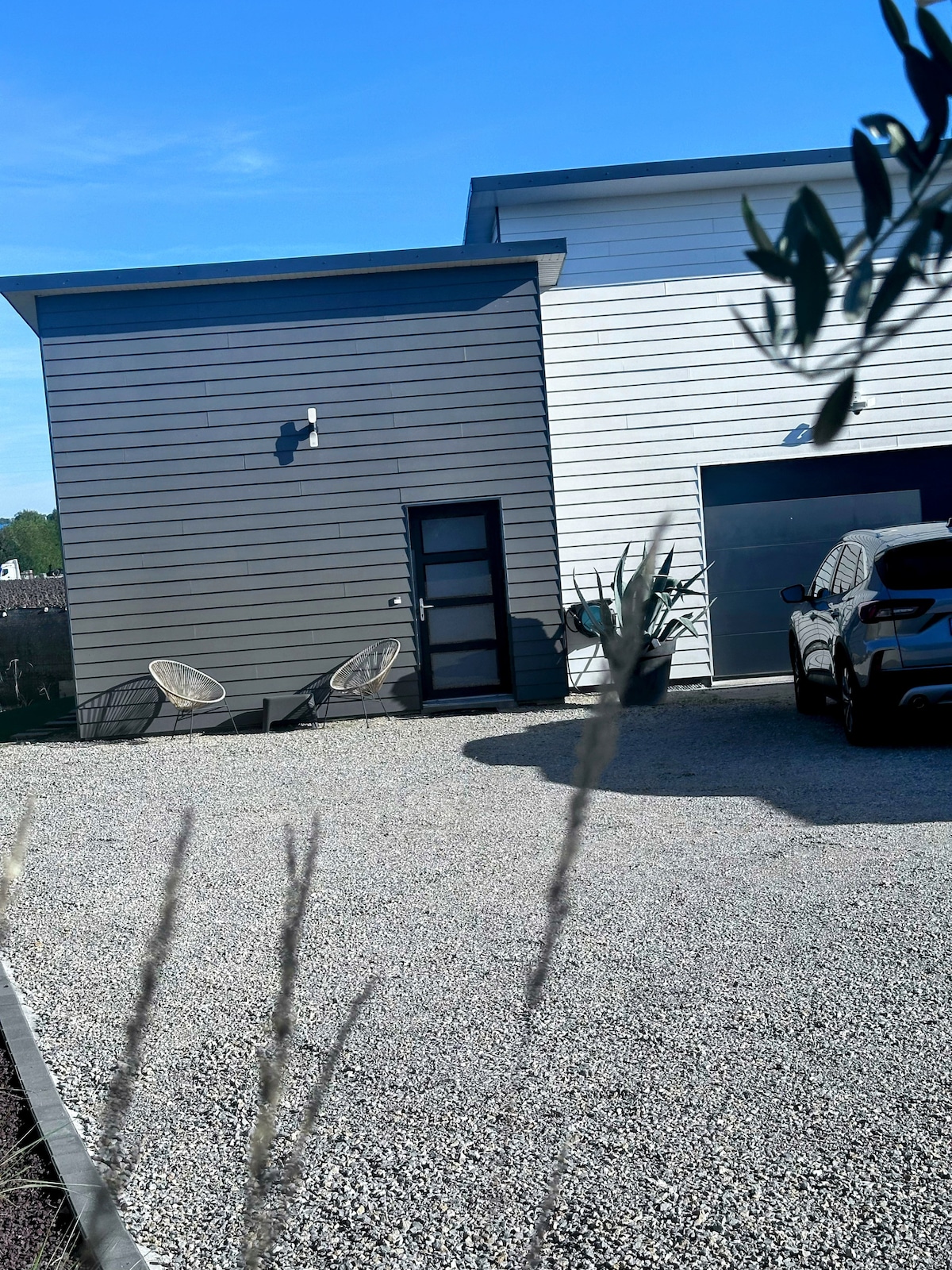 La suite du garagiste est un bien composé d'un espace salon et d'un espace nuit avec sa salle de douche et d'un WC indépendant. Dans ce logement, vous disposerez d'une télévision, d'un four micro onde et grill, d'un frigidaire, d'une cafetière et d'une bouilloire. La cour privée permet de se garer aisément. En supplément, une borne de recharge pour véhicule électrique est présente. Si vous envisagez de l'utiliser, vous voudrez bien le préciser au moment de la réservation, s'il vous plaît.