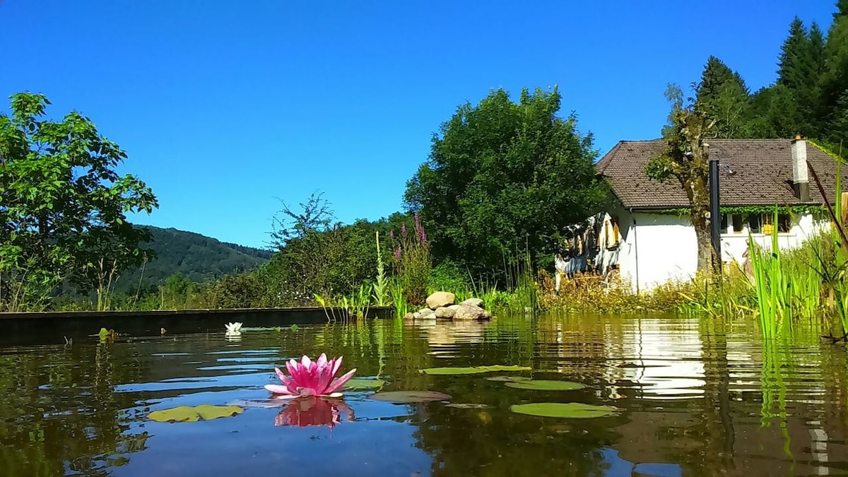 Auf unserer alten Ferme in den Südvogesen laden wir Sie ein, inmitten zauberhafter Natur zur Ruhe zu kommen – gut zu essen, gut zu schlafen, es sich gut gehen zu lassen. Es gibt hier keinen Durchgangsverkehr. Wälder und Wiesen, Felsen und Wasser – unser Grundstück (mît Naturbadesee) und seine Umgebung spiegeln die ursprüngliche und intensiv erlebbare Landschaft der Vogesen. Hier können Sie der Natur ganz nahe sein - und sich selbst.