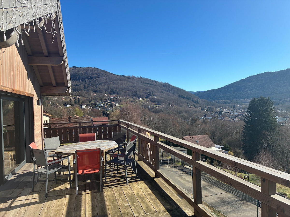 Loue bel appartement refait à neuf proche du lac de Saulxures sur Moselotte, des magasins, de la piste cyclable ,des pistes de ski comprenant une entrée avec véranda une cuisine un salon salle à manger une salle de bain des toilettes à l'étageavec escaliers ,une chambre avec lit 160 et la deuxième avec lits superposés. Un seul accès pour la 2ème chambre par la 1ère chambre. Tout équipé.