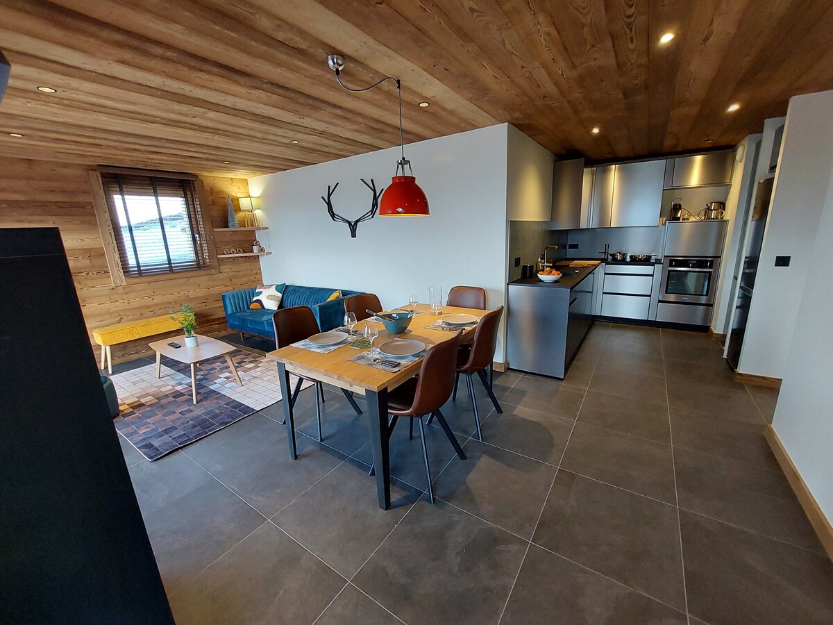 Come and enjoy a unique experience in our city chalet in Annemasse. The apartment is on the top floor, giving you an unobstructed view of the surrounding mountains. After a day of hiking, skiing or working, relax by the fireplace and unwind in the private hot tub. Located 5 minutes from Mont-Salève, 20 minutes from Geneva and 50 minutes from the first ski resorts.