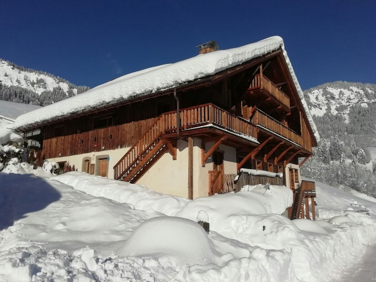 迷人的老式木石度假木屋,可欣赏勃朗峰的美景