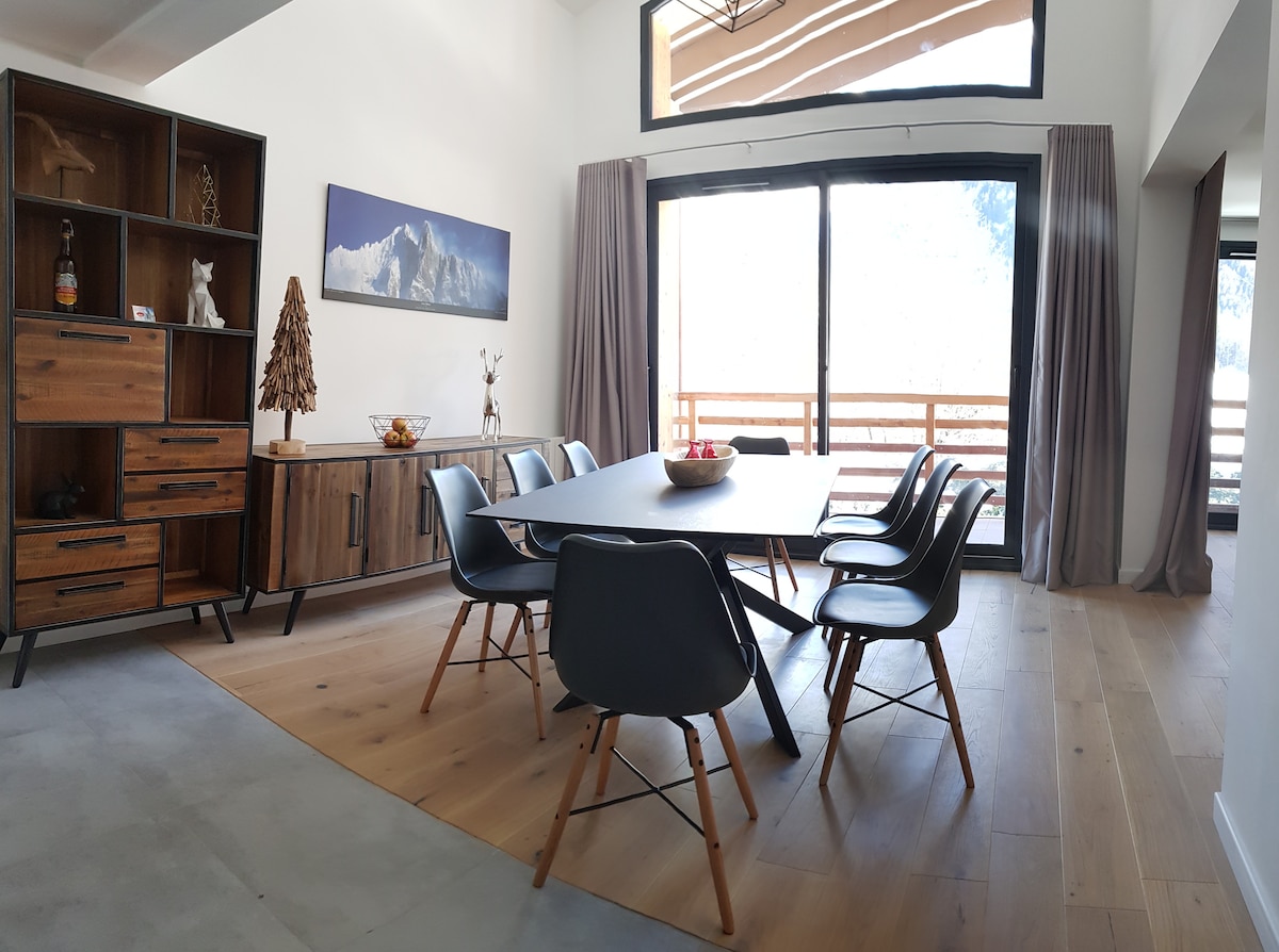 全新明亮的单间公寓,欣赏勃朗峰( Mont-Blanc )的全景