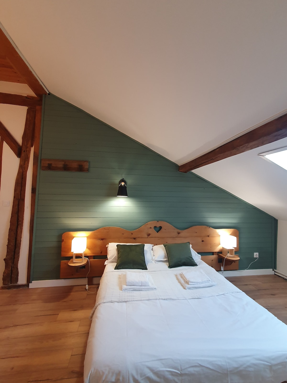 Hébergement labellisé tourisme et handicap chambre de 18 m2 avec sa salle d’eau privée intégrée, avec douche italienne, permettant l’accès aux PMR. Lit de 160*200 linge de maison non fourni , Draps dispo en supplément: 20 € par lit/séjour -> Petit dej : 13€/ pers / jour -> Repas table d’hôte : 45€/ pers (réservation au moins 24h à l’avance) - Stationnement intérieur + recharge véhicule électrique 45€ / jour - accueil des animaux de companie classique 10€/ nuit