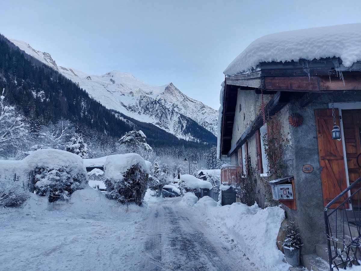 Petit studio plain-pied de 25 m2 dans une ancienne ferme typique de la vallée. Vue sur la chaine du Mont-Blanc. Dans un quartier tranquille à deux pas de Chamonix. Une place de parking( non couverte) est à votre disposition. L'entrée du studio se fait par une cour privée. Situé à 3 mn à pied de la gare routière (pas besoin d 'utiliser votre voiture) navettes sur toute la vallée. À 5 mn du départ du téléphérique de l'Aiguille du Midi et 10 min du centre ville et de ses commerces.